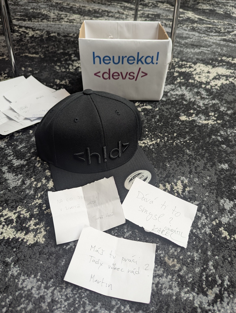 Kromě přednášky jsme si pro komunitu připravili i malou interaktivní výzvu. Soutěžilo se o náš Heureka devs merch a my jsme se zaměřili na téma, které se dotýkalo soft-skills: „Jaká otázka vám v dosavadní kariéře nejvíce pomohla?“
